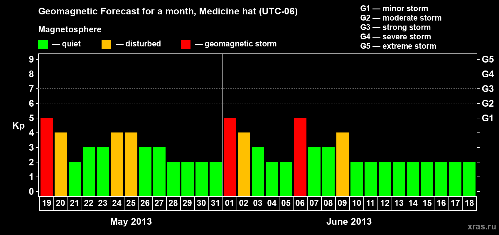 Geomagnetic storm forecast in Medicine hat for May 19, 2013