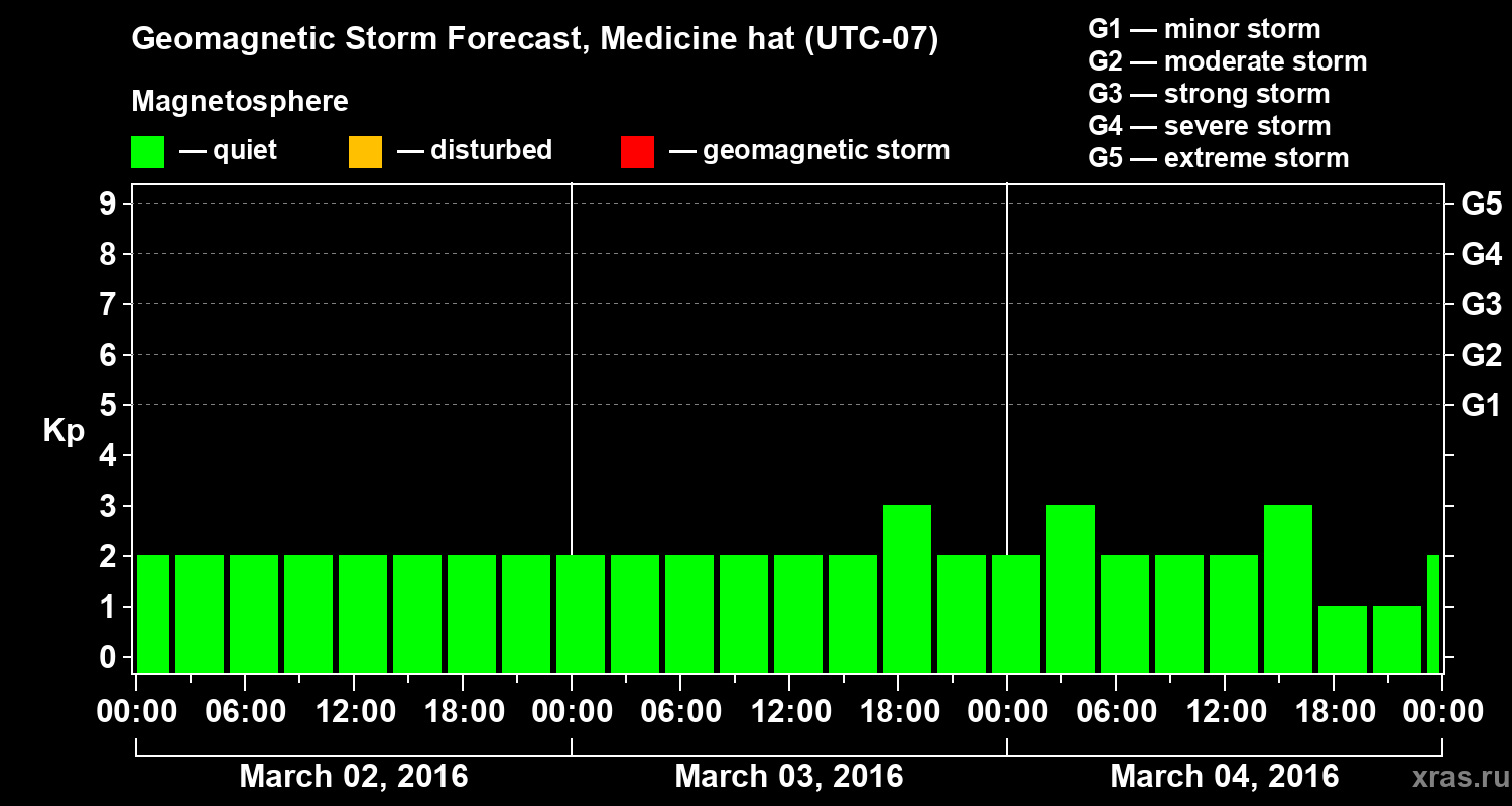 Geomagnetic storm forecast in Medicine hat for Mar 02, 2016