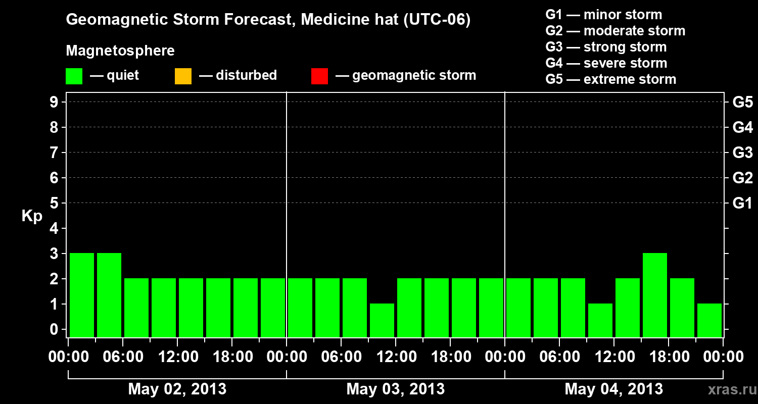 Geomagnetic storm forecast in Medicine hat for May 02, 2013