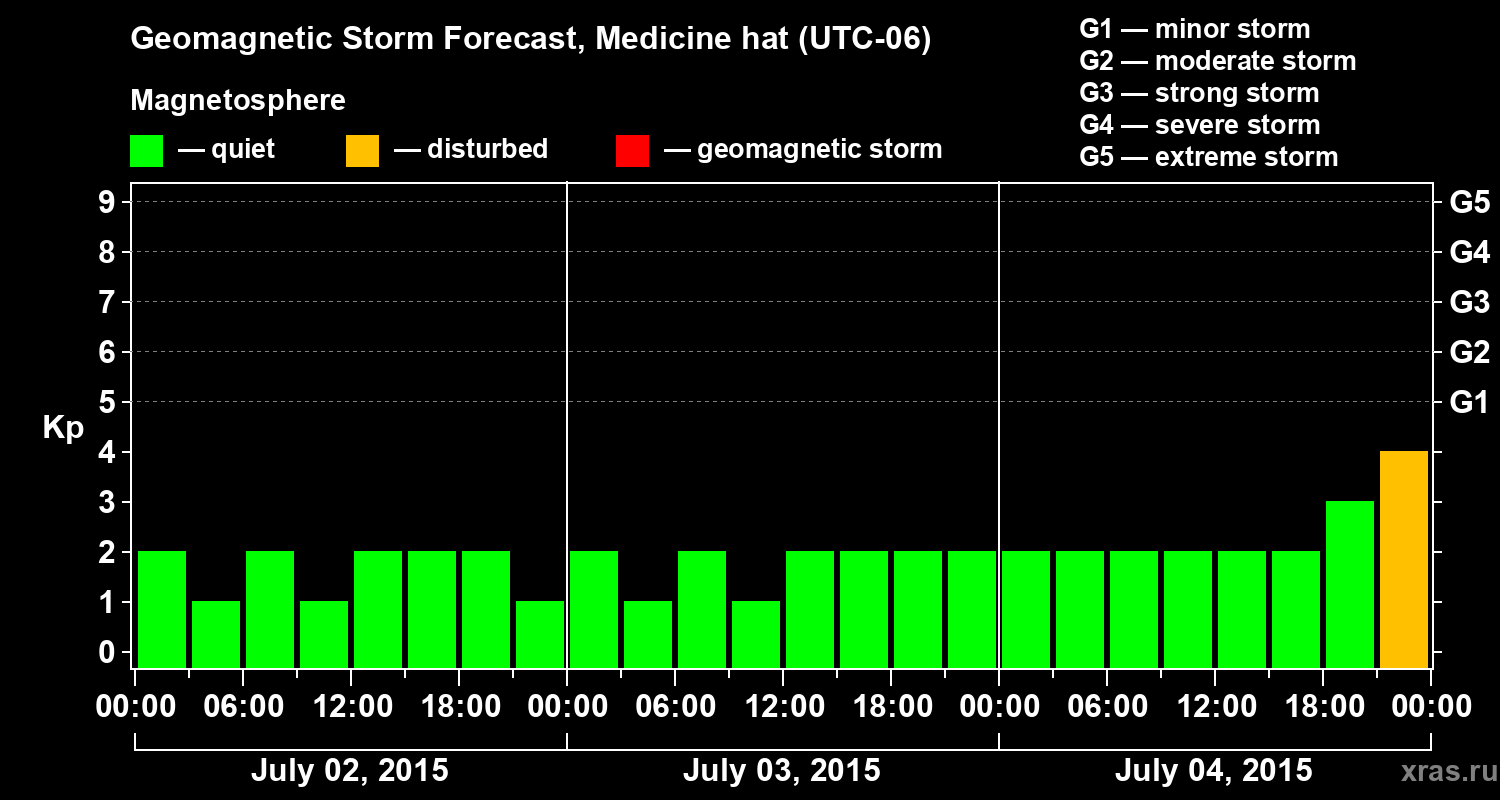 Geomagnetic storm forecast in Medicine hat for Jul 02, 2015