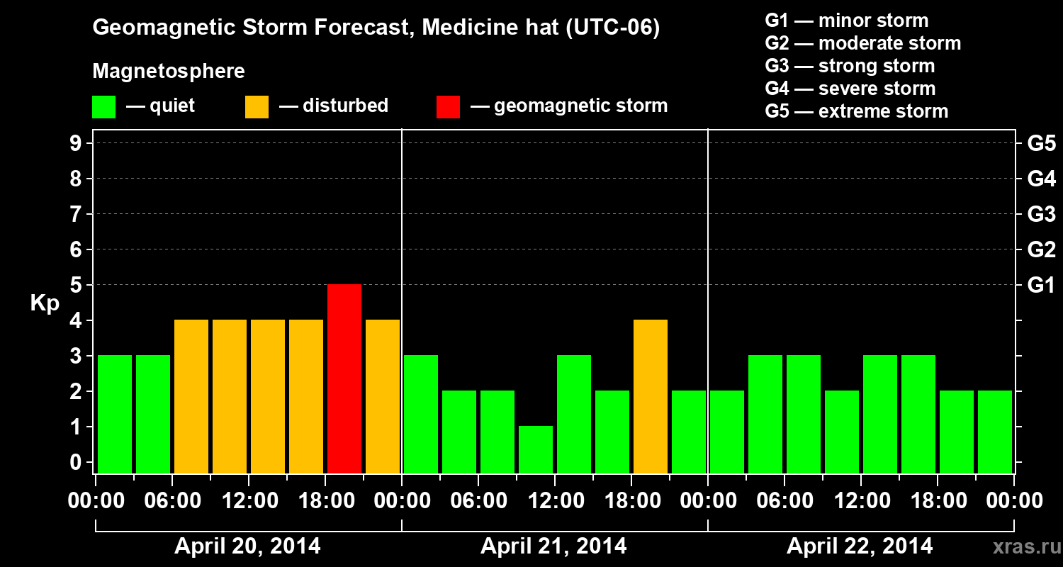 Geomagnetic storm forecast in Medicine hat for Apr 20, 2014