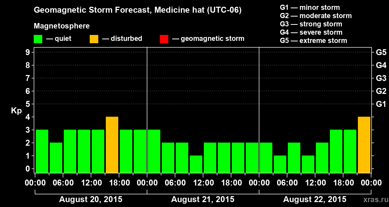Geomagnetic storm forecast in Medicine hat for Aug 20, 2015