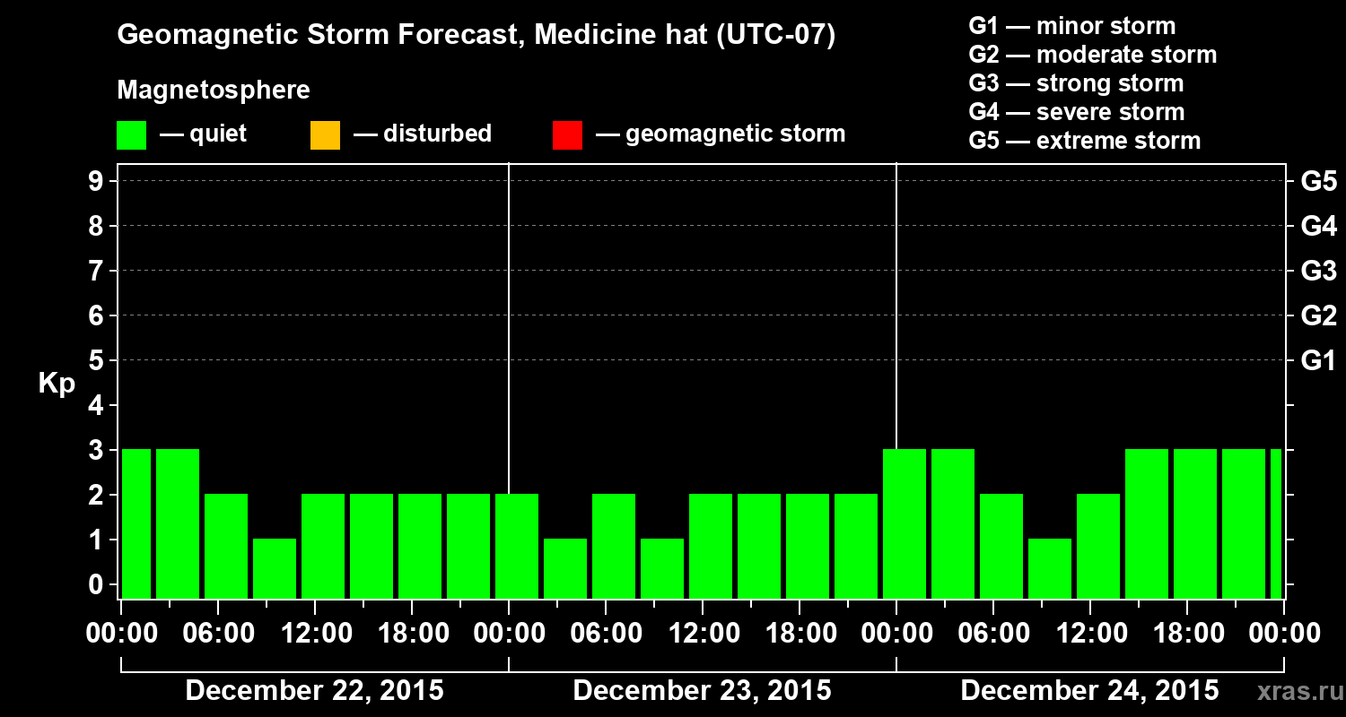 Geomagnetic storm forecast in Medicine hat for Dec 22, 2015