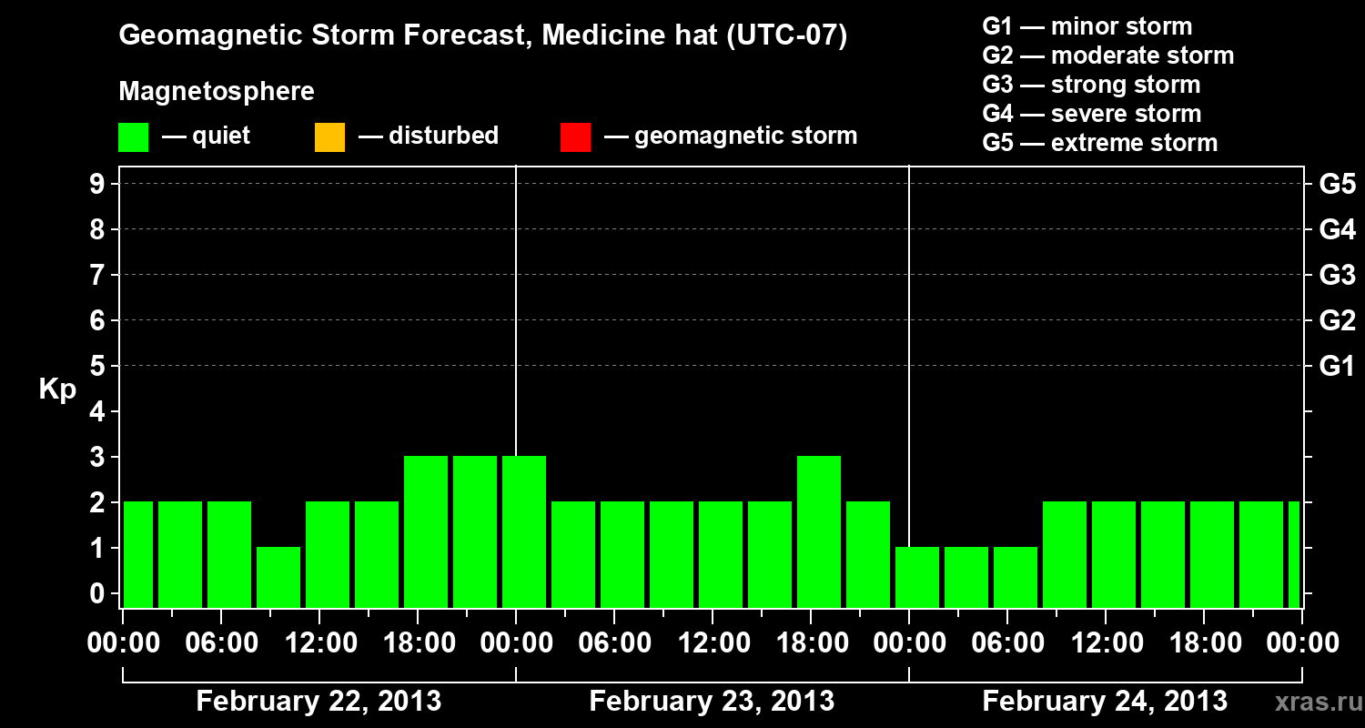 Geomagnetic storm forecast in Medicine hat for Feb 22, 2013