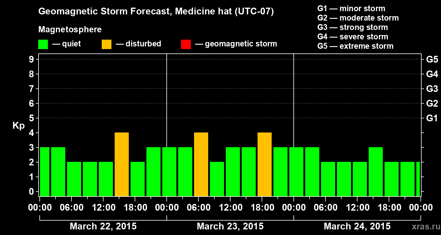Geomagnetic storm forecast in Medicine hat for Mar 22, 2015