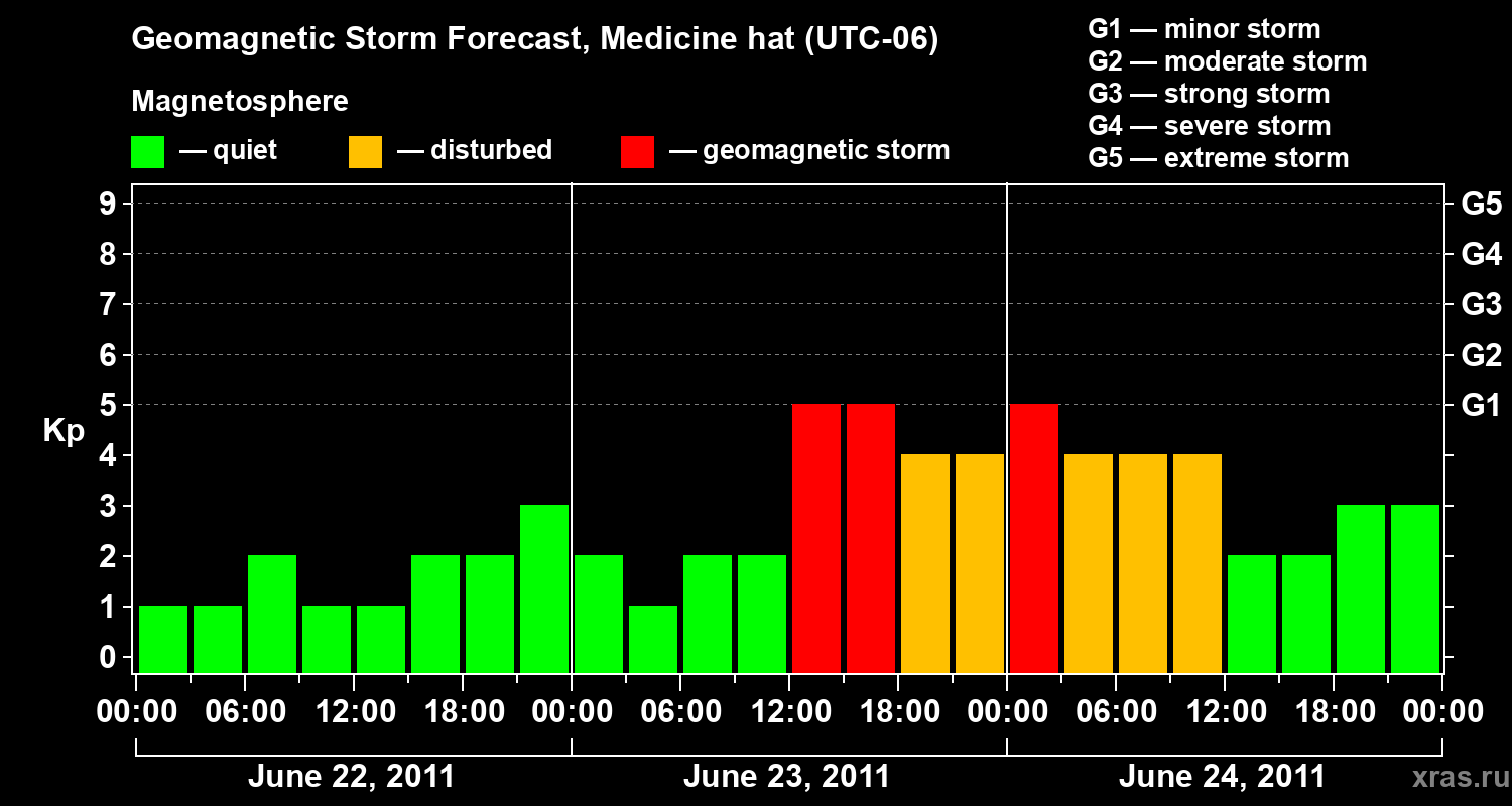 Geomagnetic storm forecast in Medicine hat for Jun 22, 2011