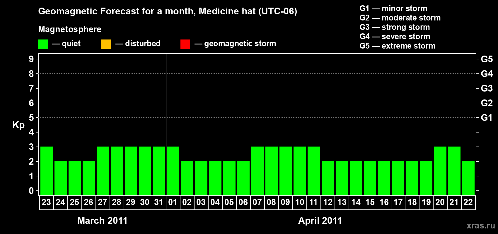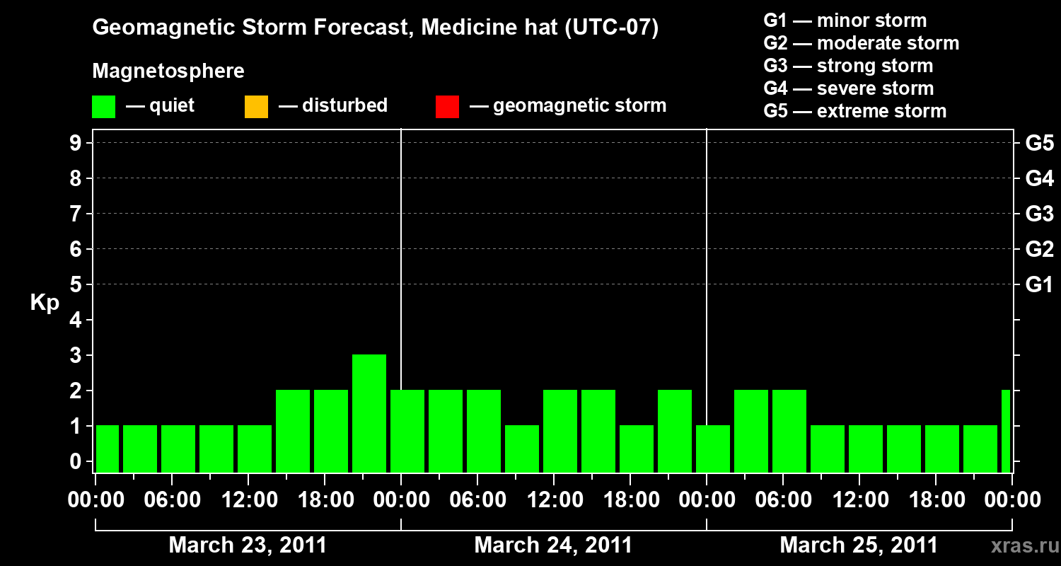 Geomagnetic storm forecast in Medicine hat for Mar 23, 2011