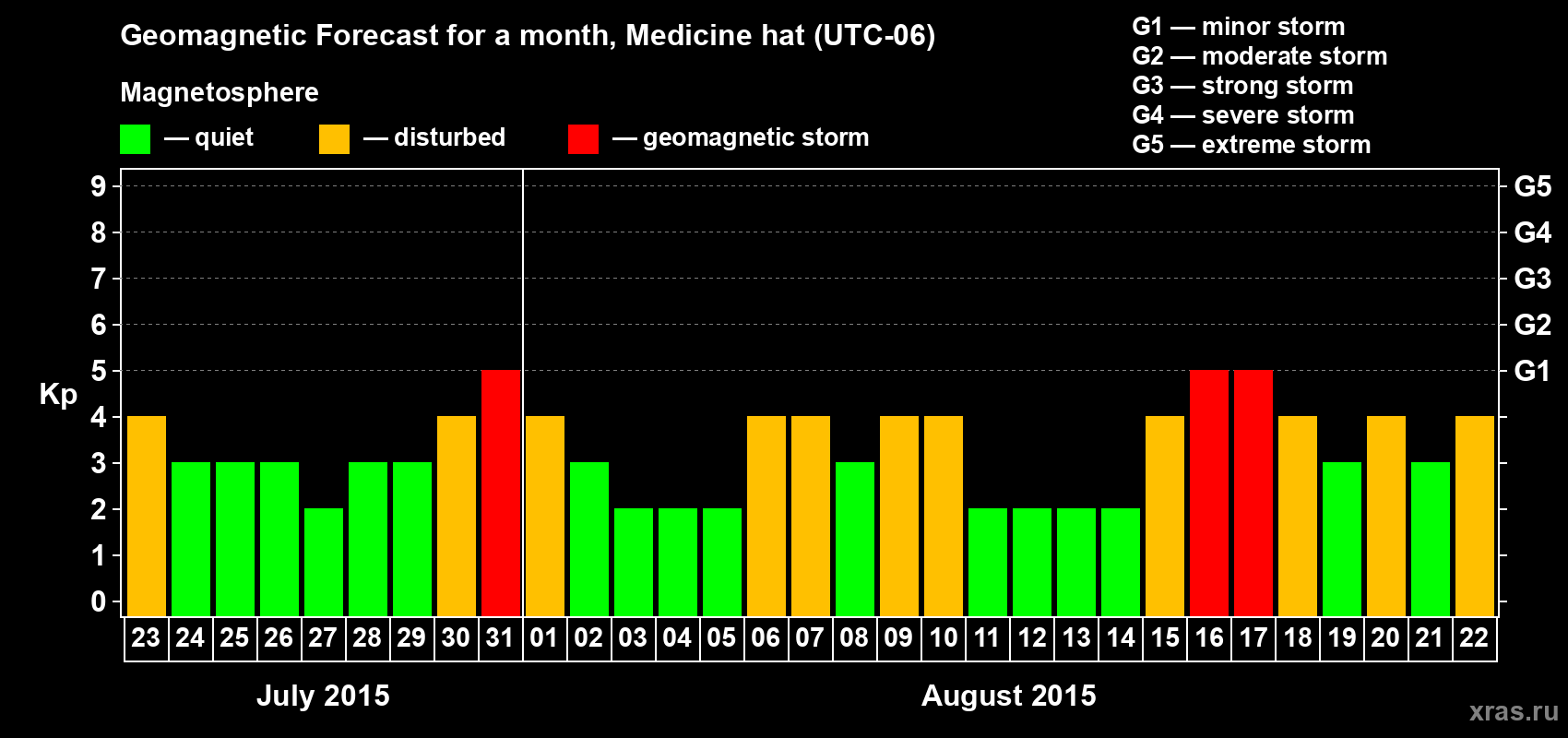 Geomagnetic storm forecast in Medicine hat for Jul 23, 2015