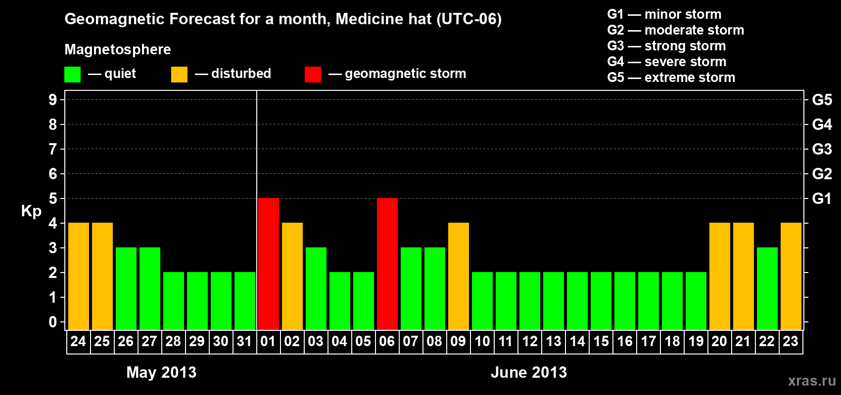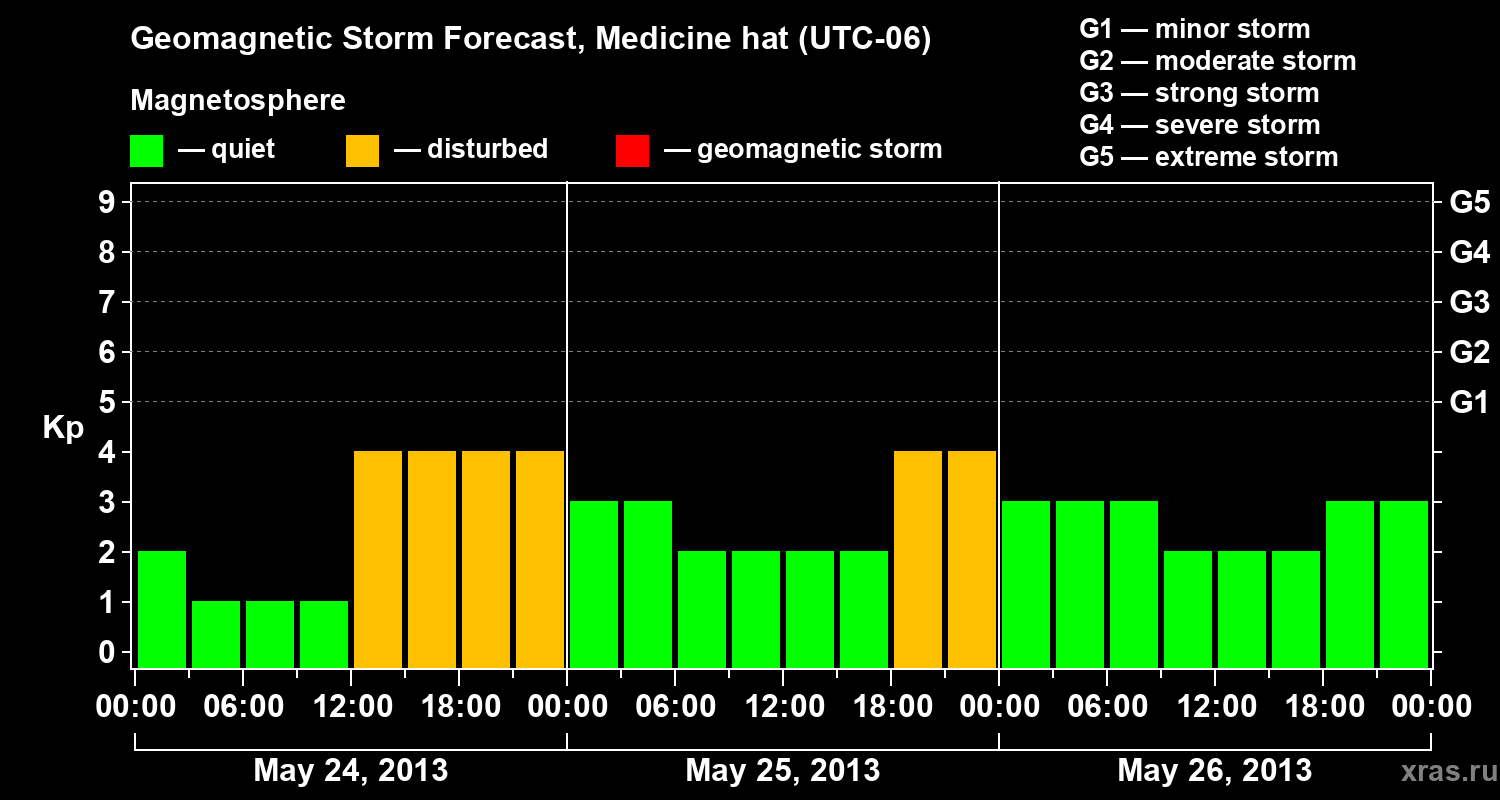 Geomagnetic storm forecast in Medicine hat for May 24, 2013