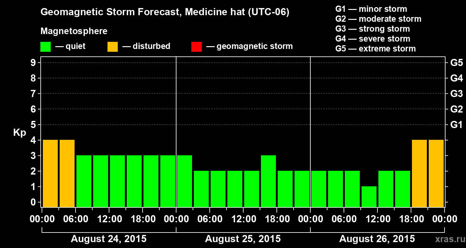 Geomagnetic storm forecast in Medicine hat for Aug 24, 2015