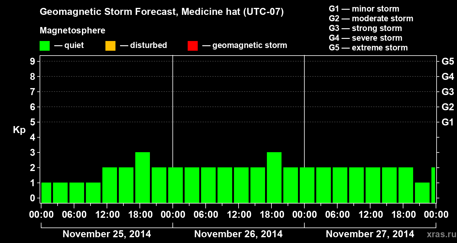 Geomagnetic storm forecast in Medicine hat for Nov 25, 2014