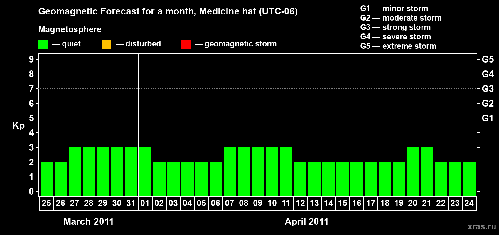 Geomagnetic storm forecast in Medicine hat for Mar 25, 2011
