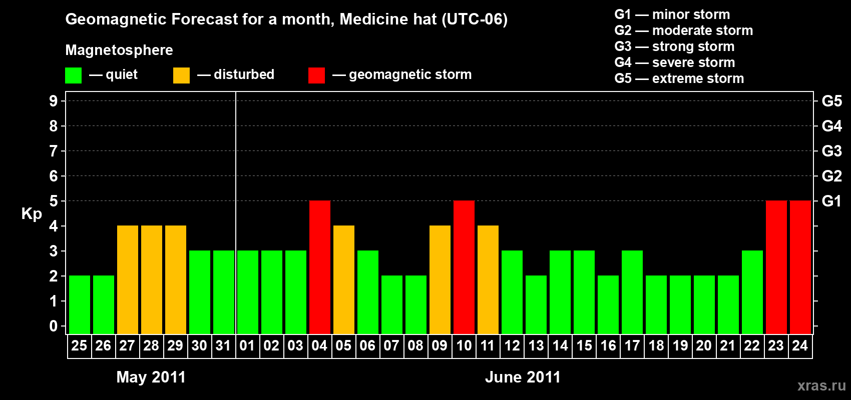 Geomagnetic storm forecast in Medicine hat for May 25, 2011