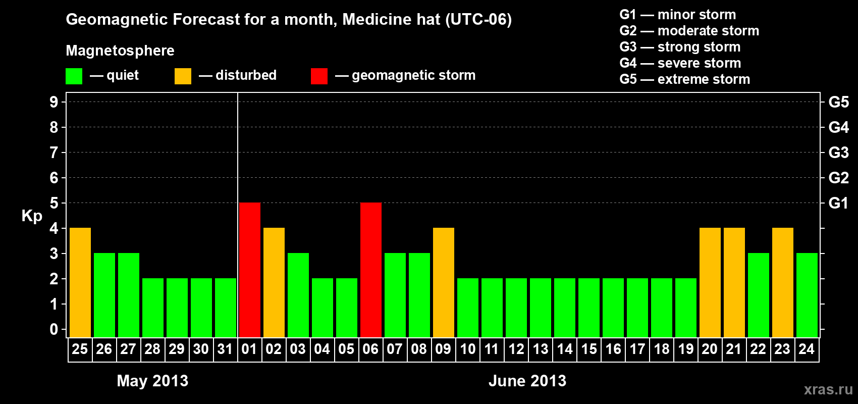 Geomagnetic storm forecast in Medicine hat for May 25, 2013