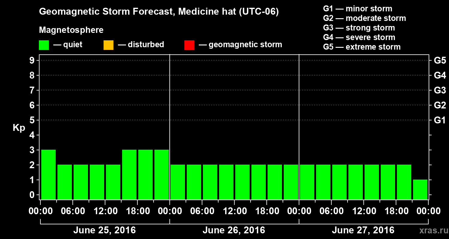 Geomagnetic storm forecast in Medicine hat for Jun 25, 2016