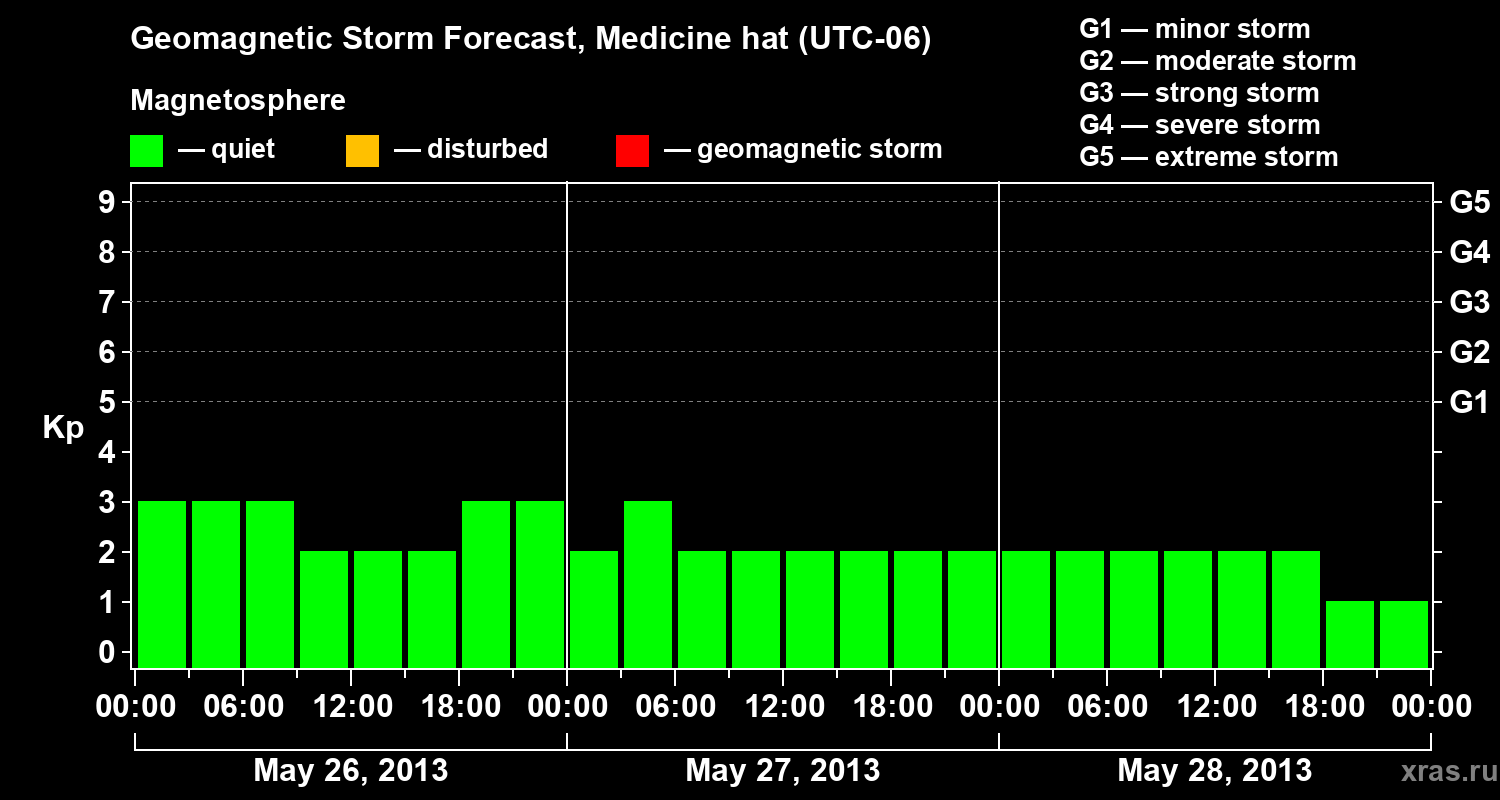 Geomagnetic storm forecast in Medicine hat for May 26, 2013