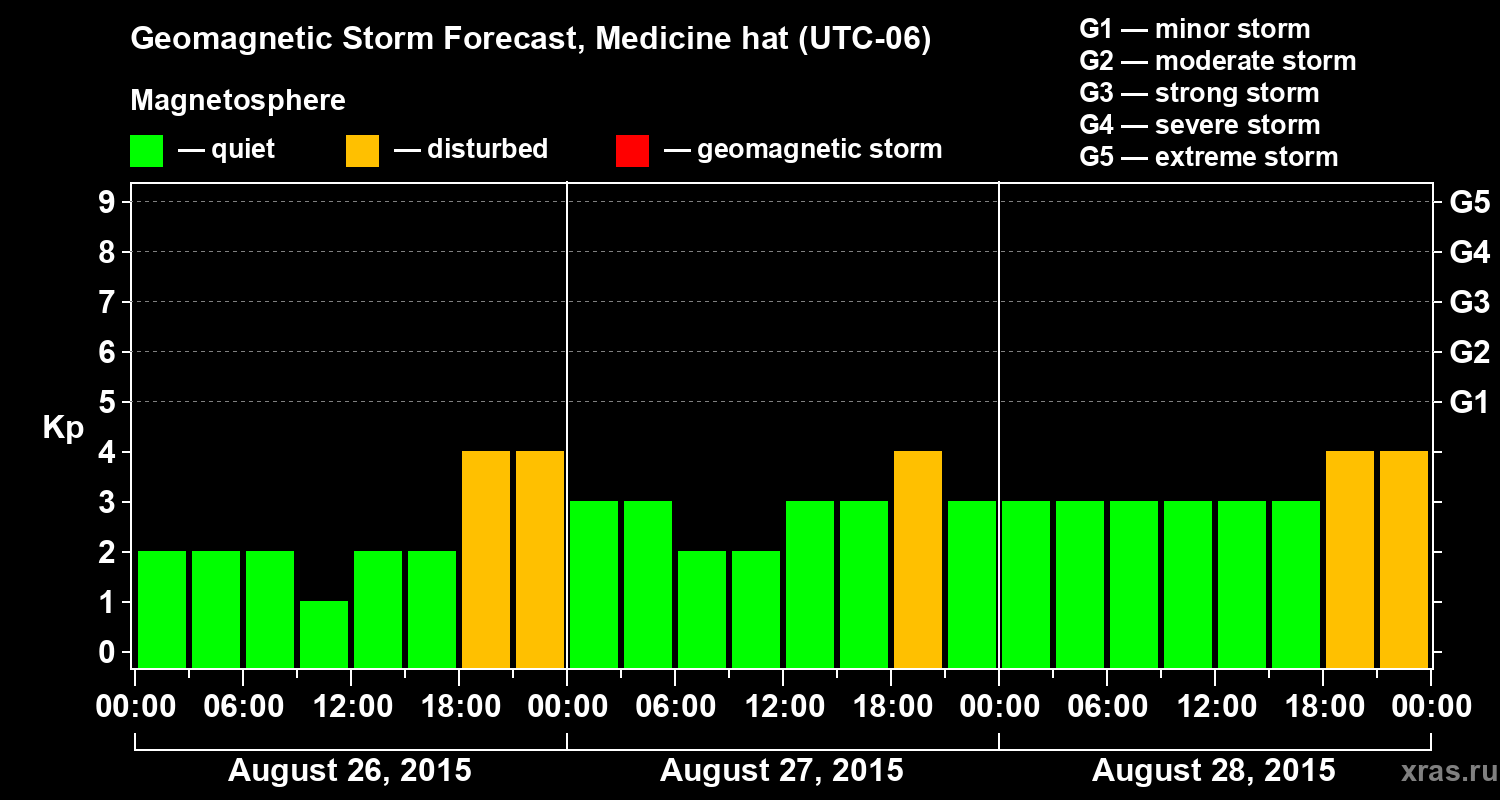 Geomagnetic storm forecast in Medicine hat for Aug 26, 2015