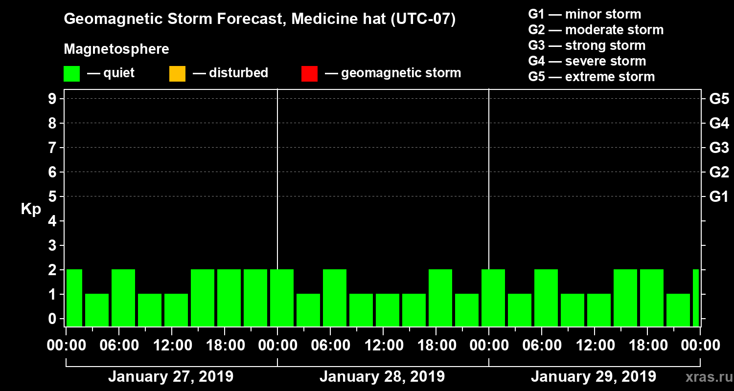 Geomagnetic storm forecast in Medicine hat for Jan 27, 2019