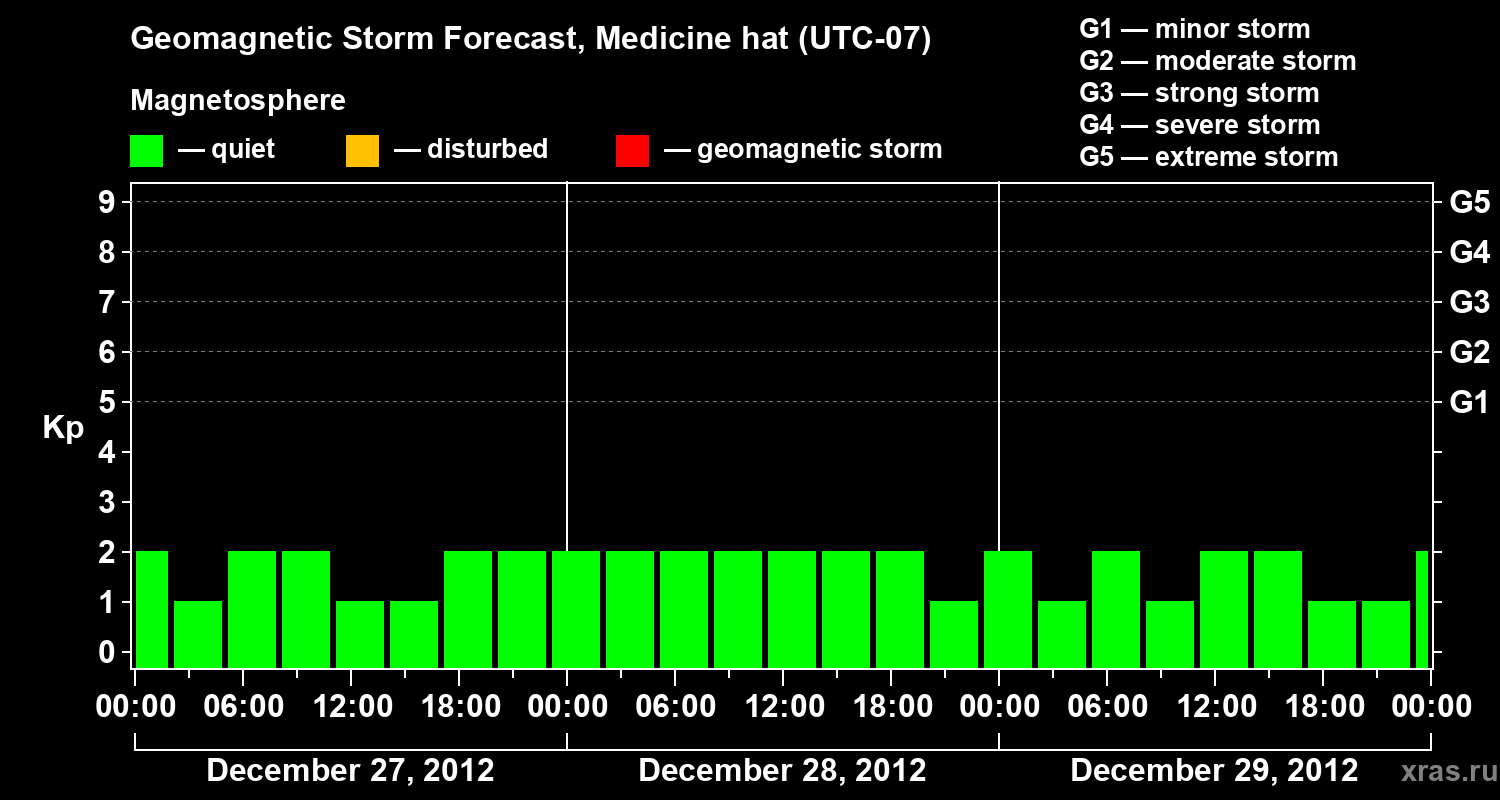 Geomagnetic storm forecast in Medicine hat for Dec 27, 2012