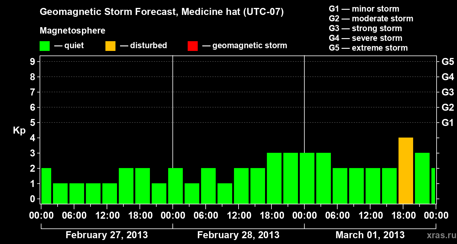 Geomagnetic storm forecast in Medicine hat for Feb 27, 2013