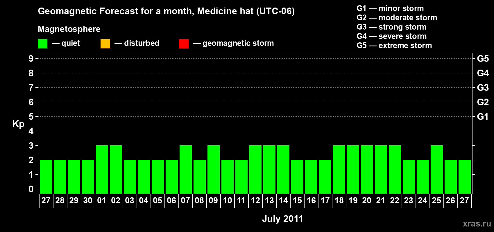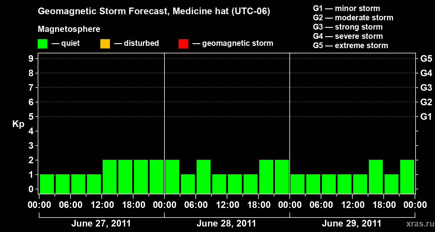 Geomagnetic storm forecast in Medicine hat for Jun 27, 2011