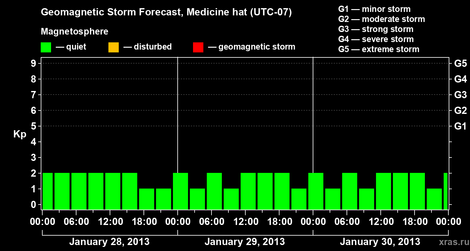 Geomagnetic storm forecast in Medicine hat for Jan 28, 2013