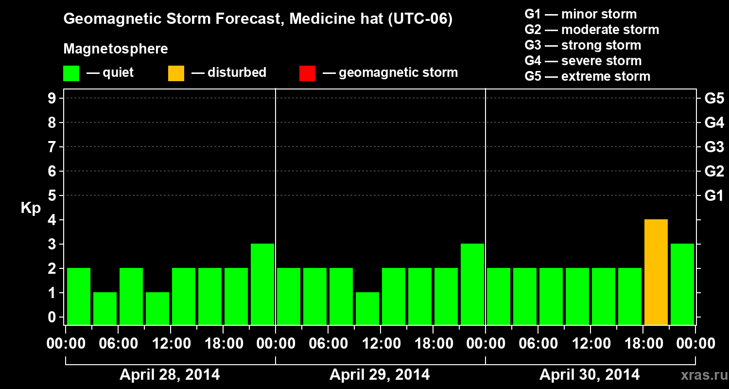 Geomagnetic storm forecast in Medicine hat for Apr 28, 2014
