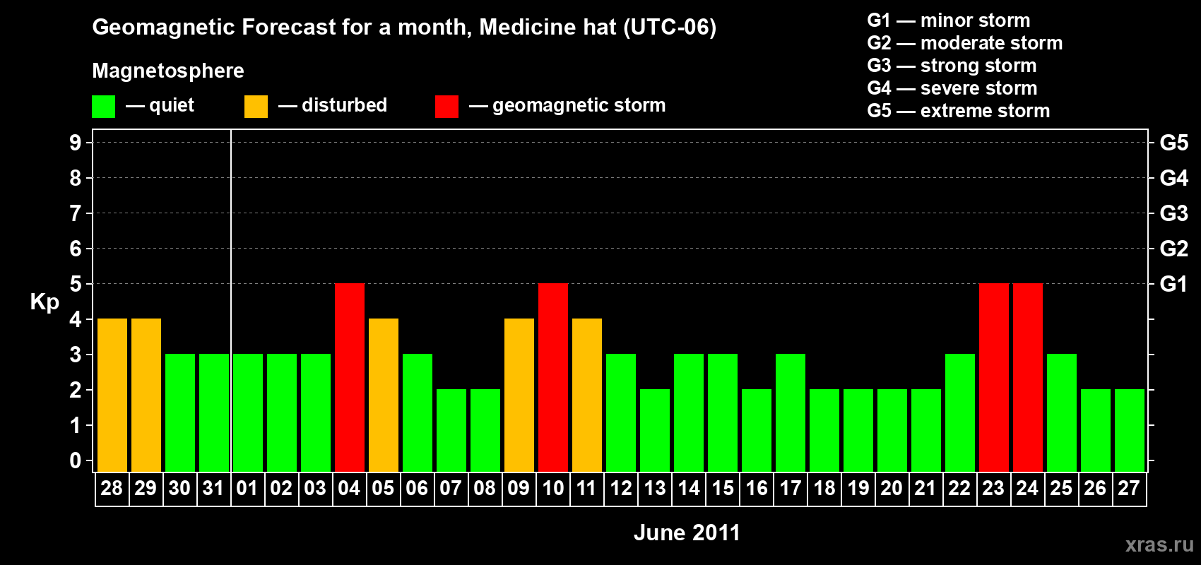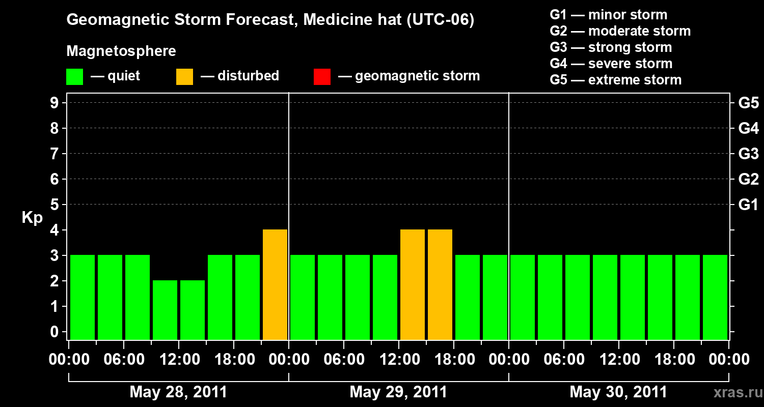 Geomagnetic storm forecast in Medicine hat for May 28, 2011