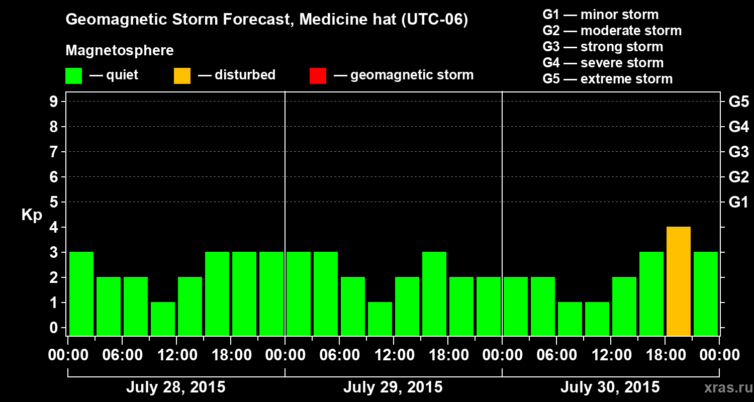 Geomagnetic storm forecast in Medicine hat for Jul 28, 2015