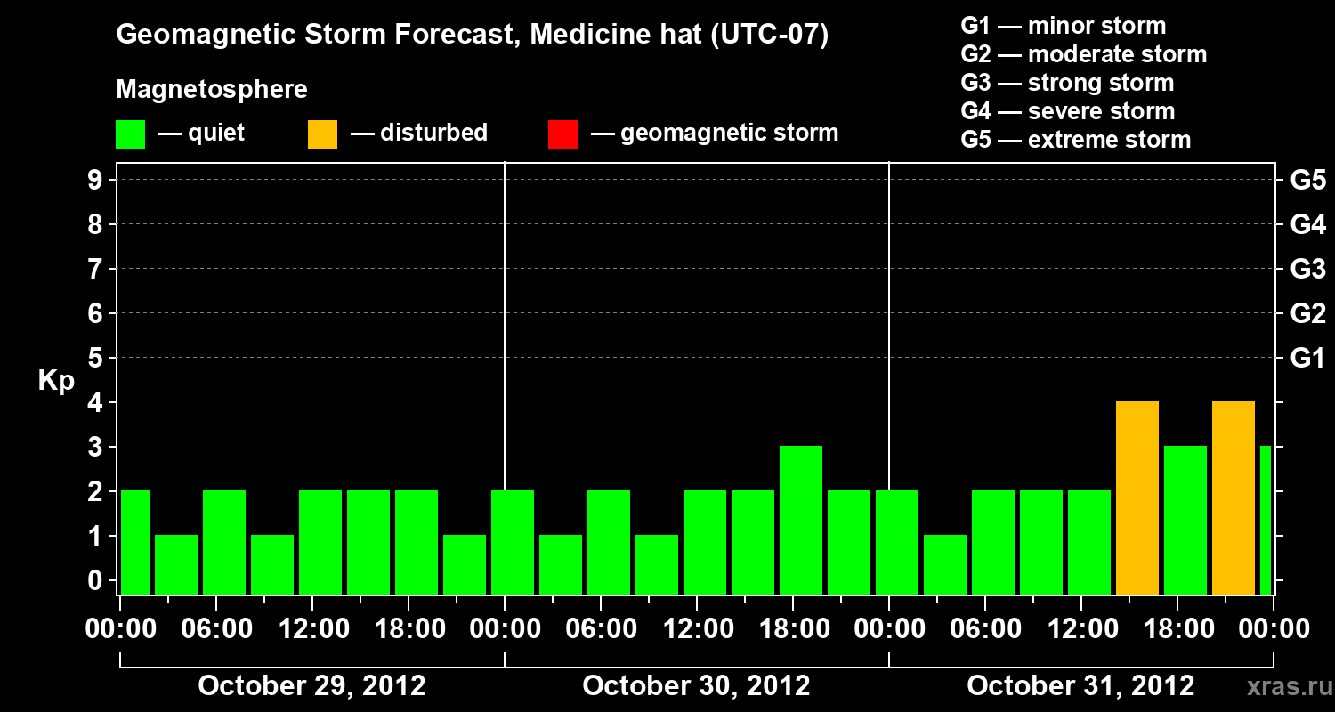 Geomagnetic storm forecast in Medicine hat for Oct 29, 2012