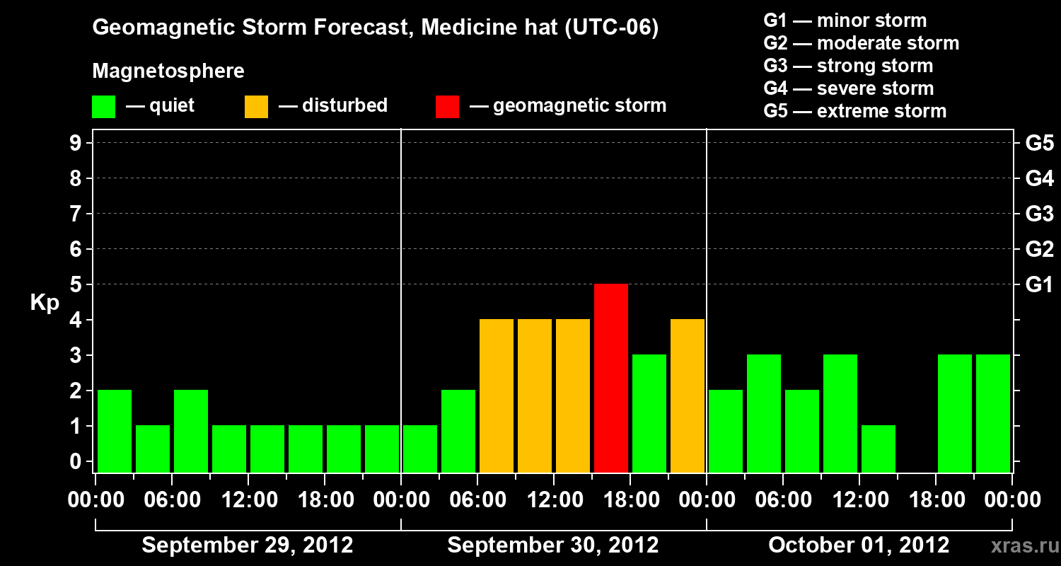 Geomagnetic storm forecast in Medicine hat for Sep 29, 2012
