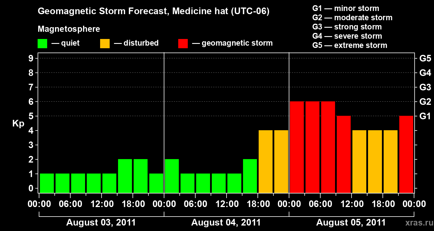 Geomagnetic storm forecast in Medicine hat for Aug 03, 2011