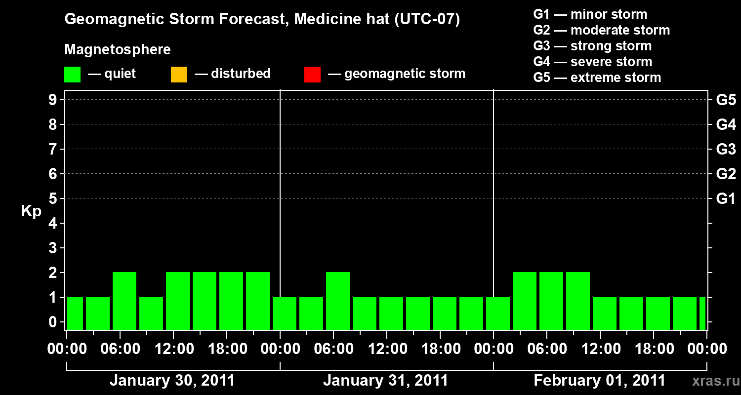 Geomagnetic storm forecast in Medicine hat for Jan 30, 2011
