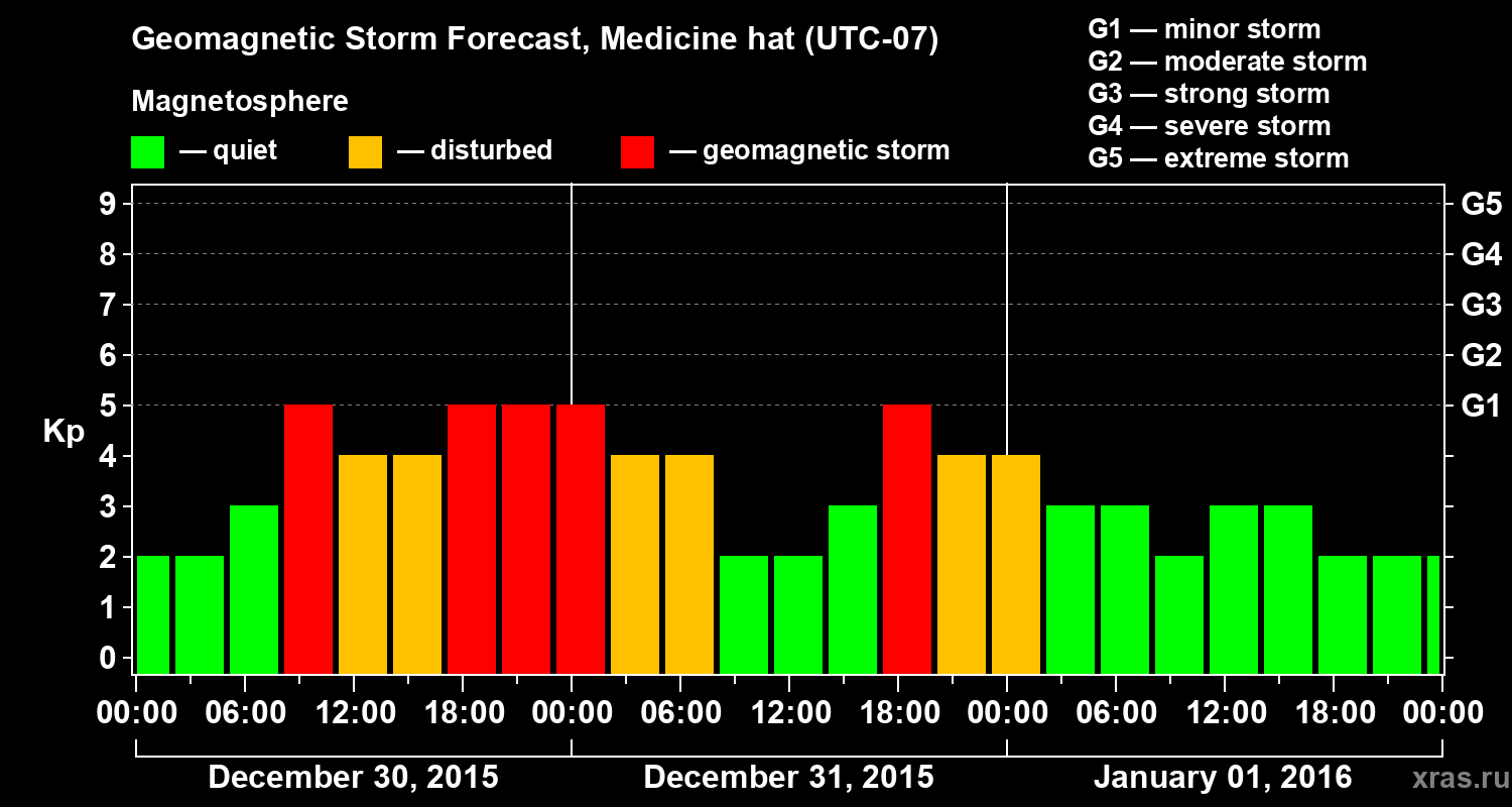 Geomagnetic storm forecast in Medicine hat for Dec 30, 2015