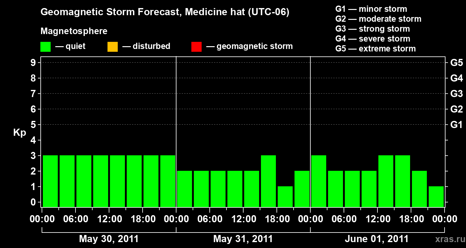 Geomagnetic storm forecast in Medicine hat for May 30, 2011