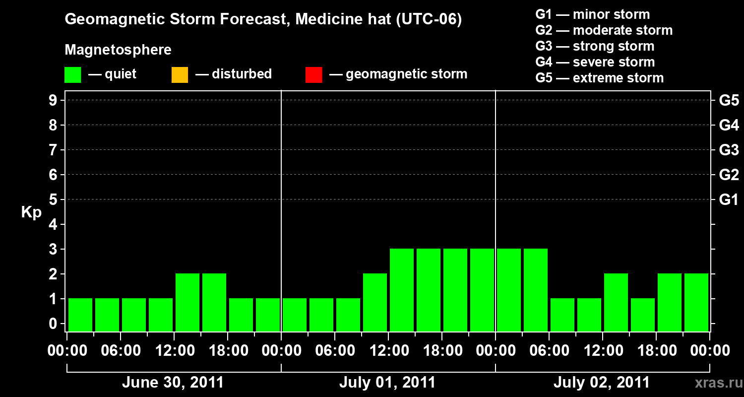 Geomagnetic storm forecast in Medicine hat for Jun 30, 2011