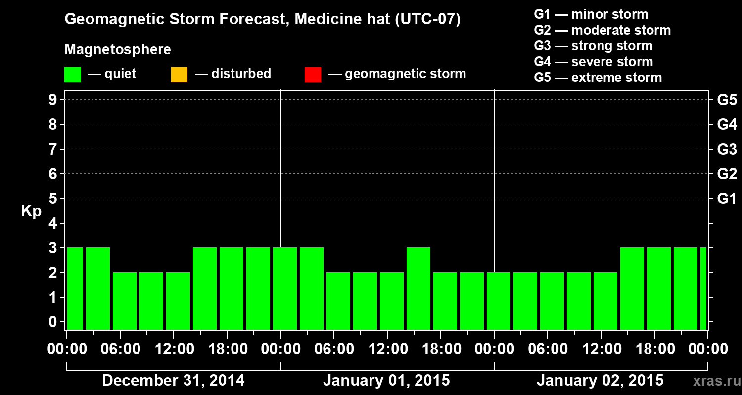 Geomagnetic storm forecast in Medicine hat for Dec 31, 2014