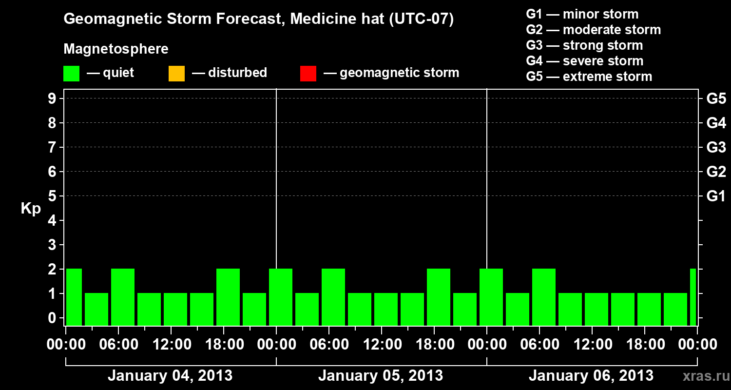 Geomagnetic storm forecast in Medicine hat for Jan 04, 2013