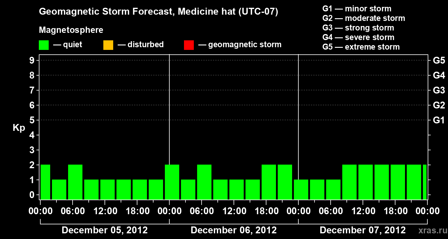 Geomagnetic storm forecast in Medicine hat for Dec 05, 2012