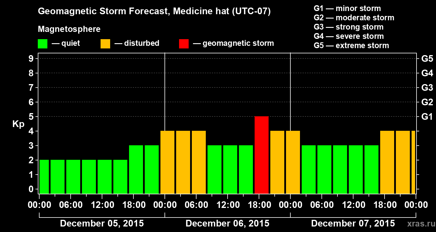 Geomagnetic storm forecast in Medicine hat for Dec 05, 2015