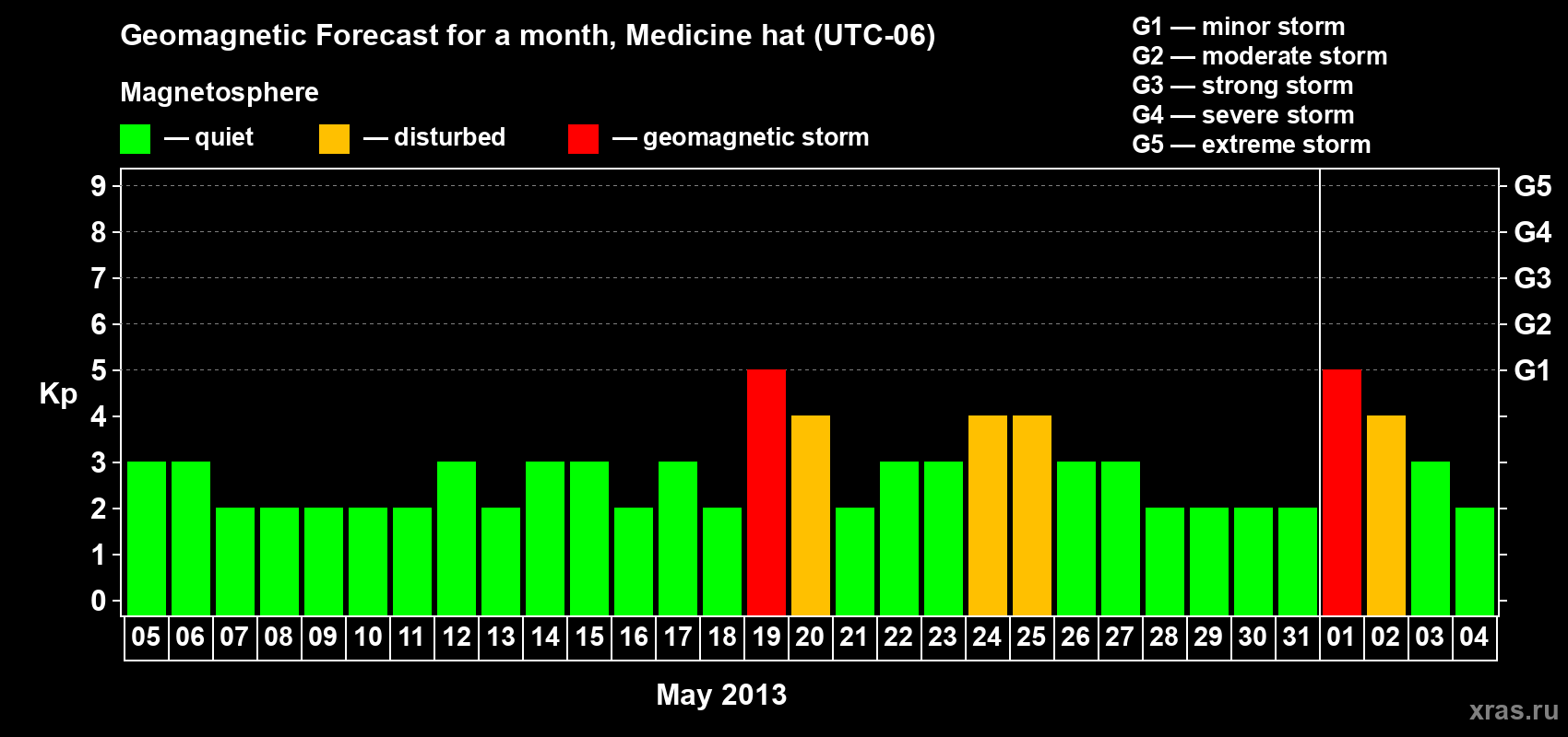 Geomagnetic storm forecast in Medicine hat for May 05, 2013