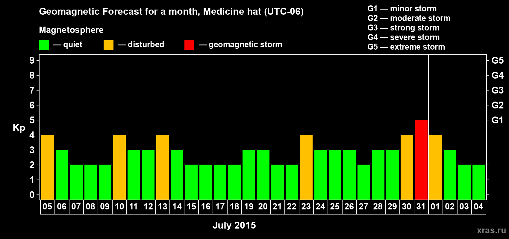 Geomagnetic storm forecast in Medicine hat for Jul 05, 2015