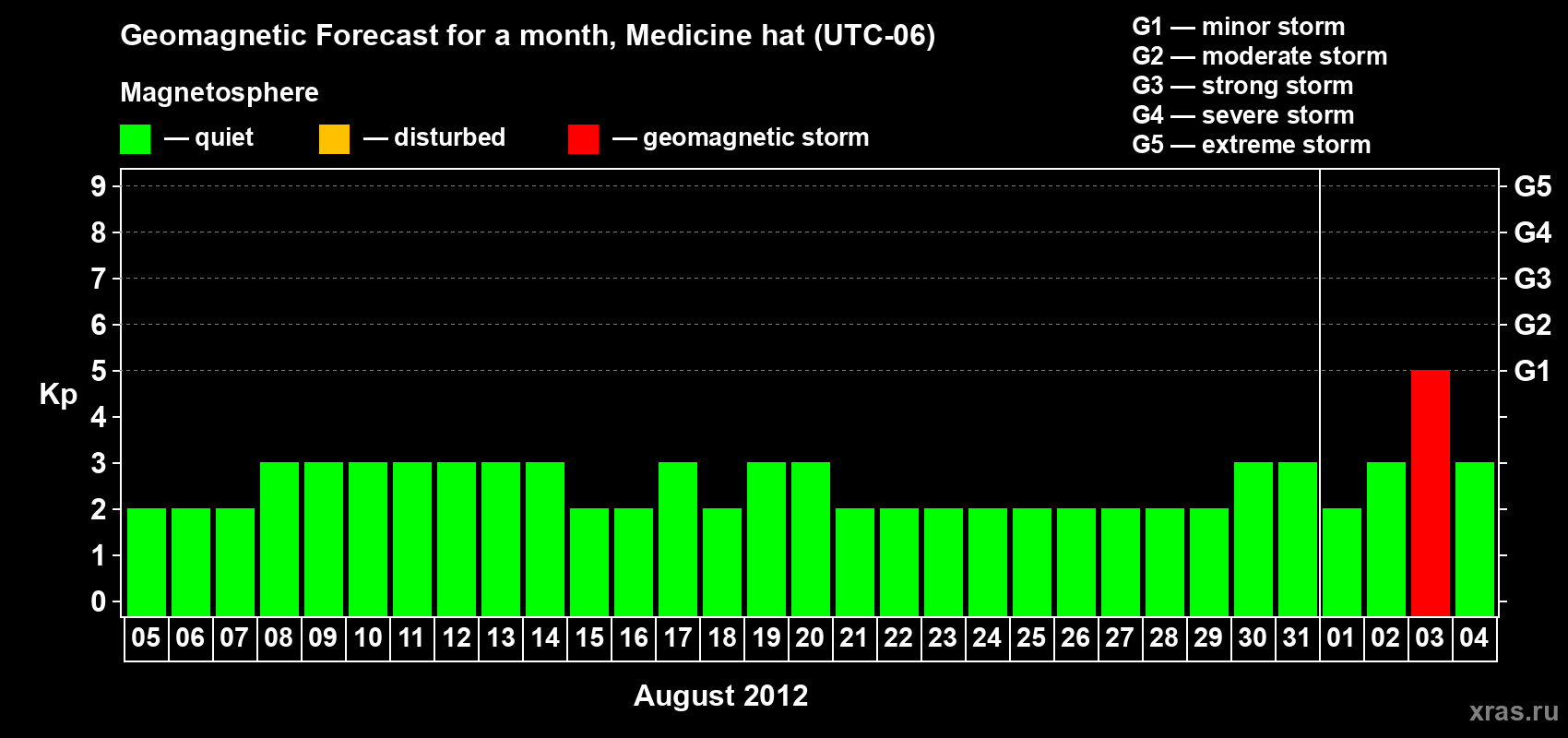 Geomagnetic storm forecast in Medicine hat for Aug 05, 2012