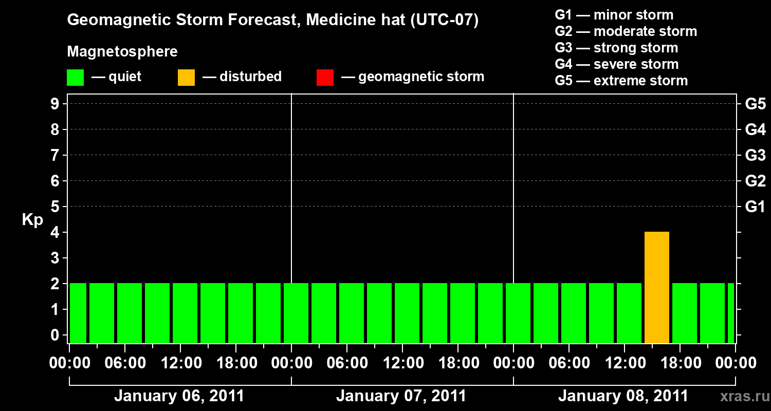 Geomagnetic storm forecast in Medicine hat for Jan 06, 2011