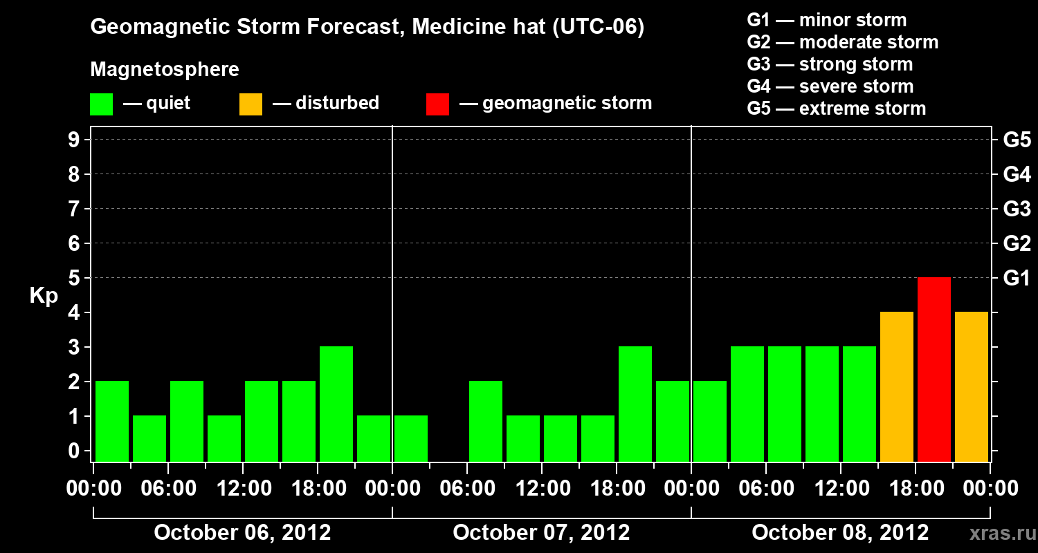 Geomagnetic storm forecast in Medicine hat for Oct 06, 2012