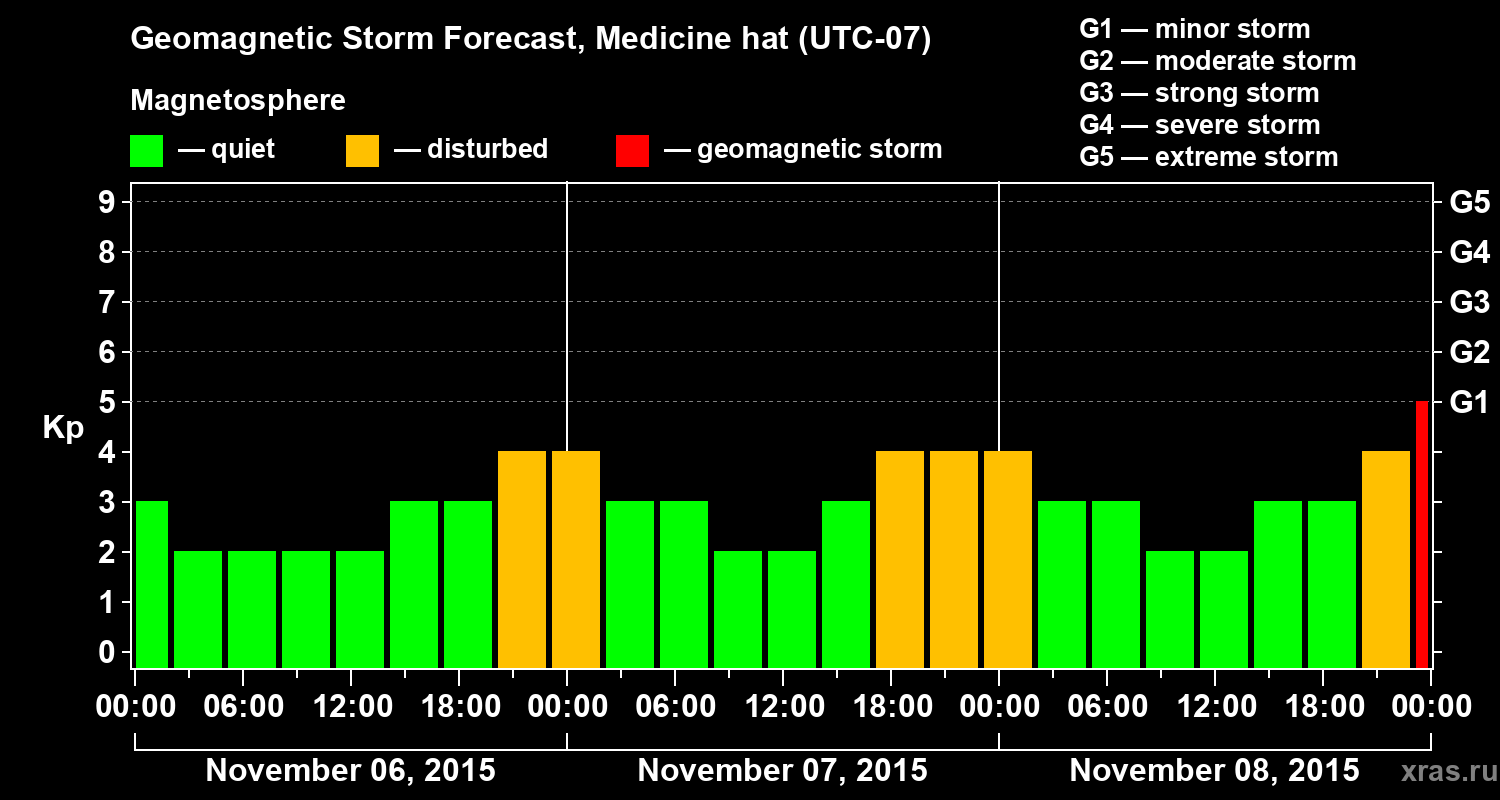 Geomagnetic storm forecast in Medicine hat for Nov 06, 2015