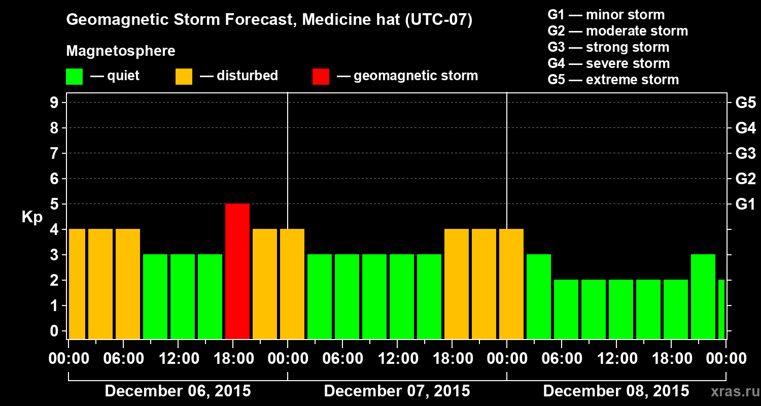 Geomagnetic storm forecast in Medicine hat for Dec 06, 2015