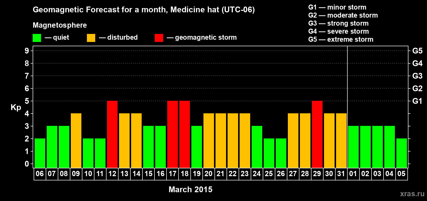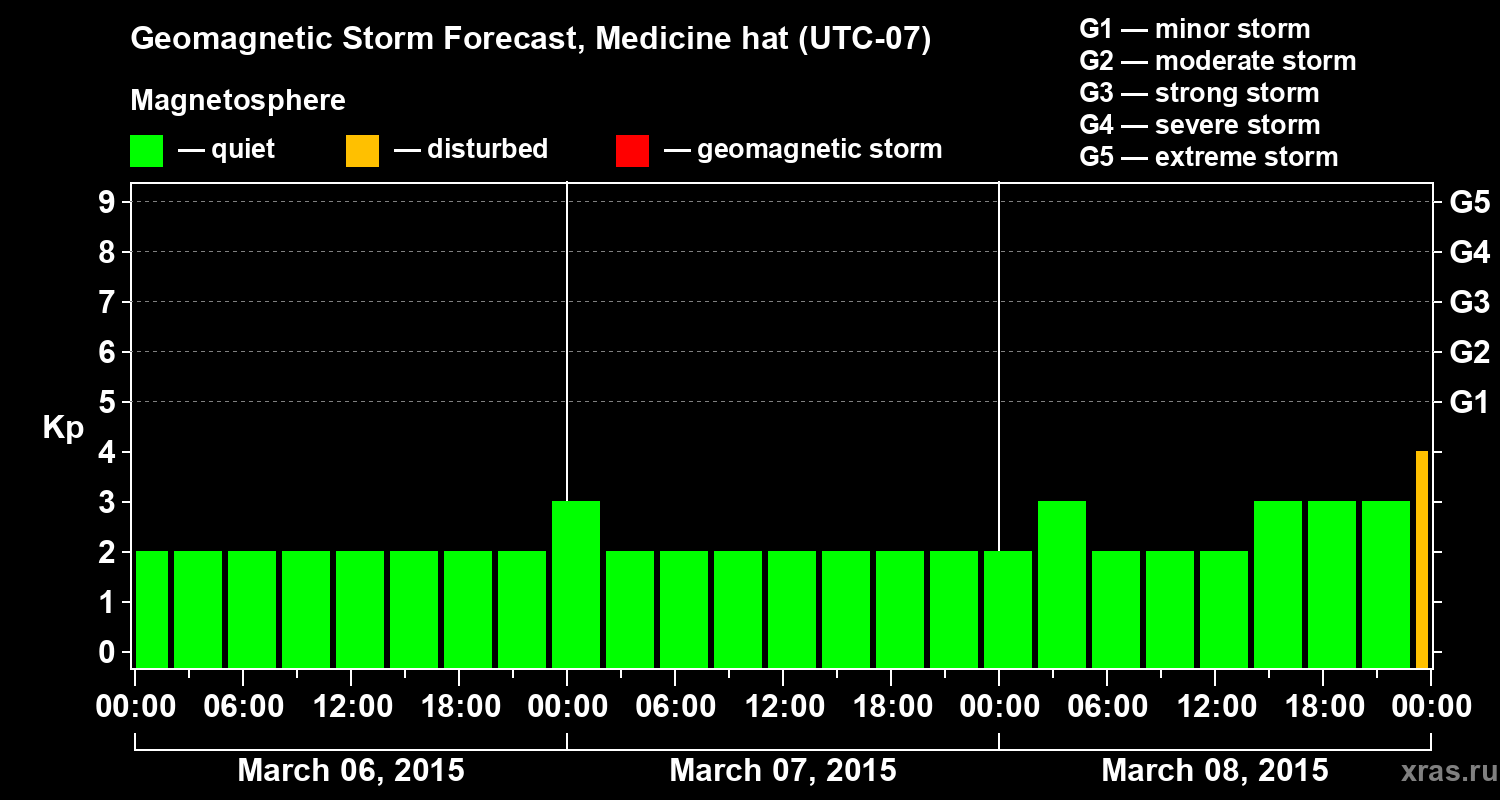 Geomagnetic storm forecast in Medicine hat for Mar 06, 2015