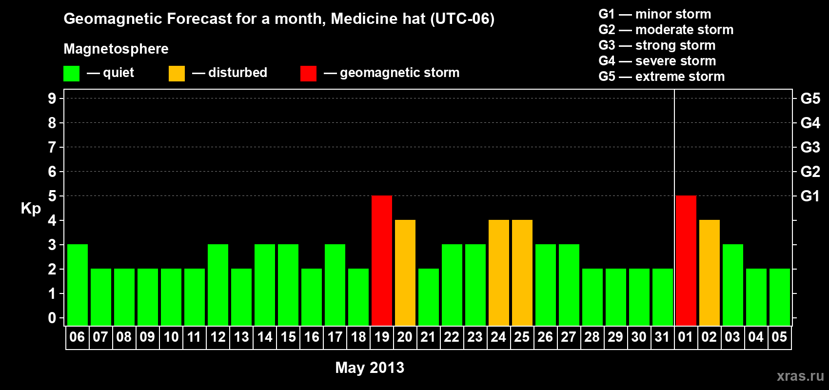 Geomagnetic storm forecast in Medicine hat for May 06, 2013