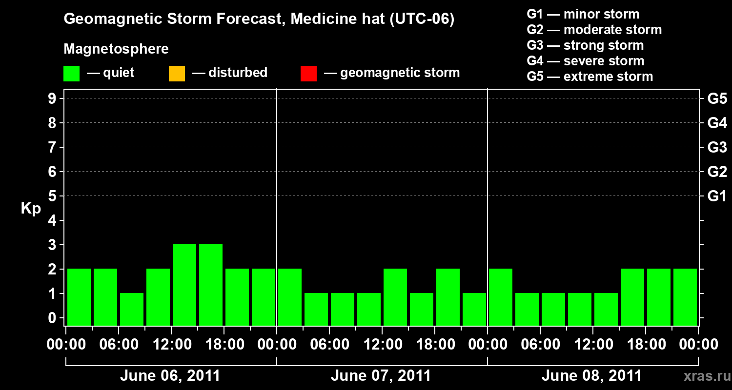 Geomagnetic storm forecast in Medicine hat for Jun 06, 2011